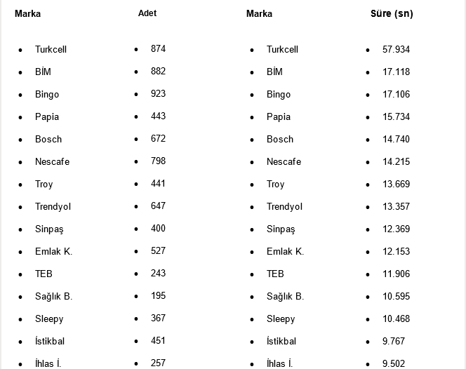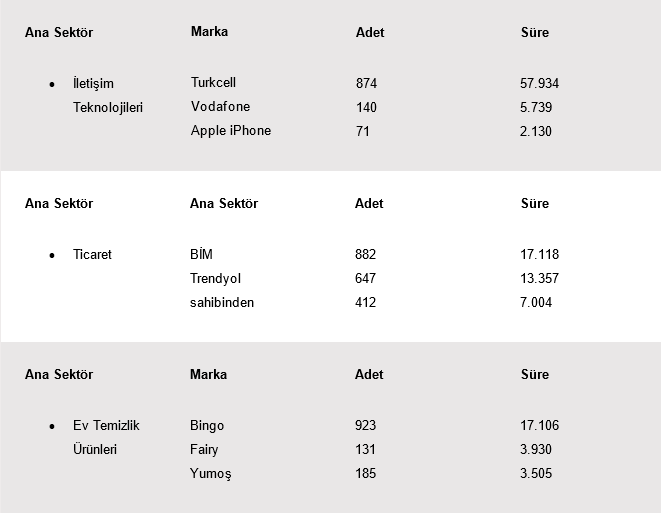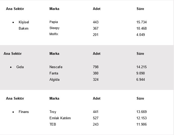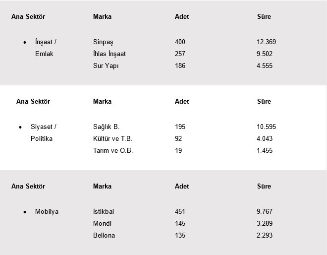 EN ÇOK REKLAM VEREN 10 SEKTÖRÜN İLK 3 MARKASI