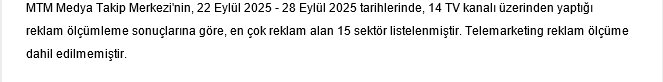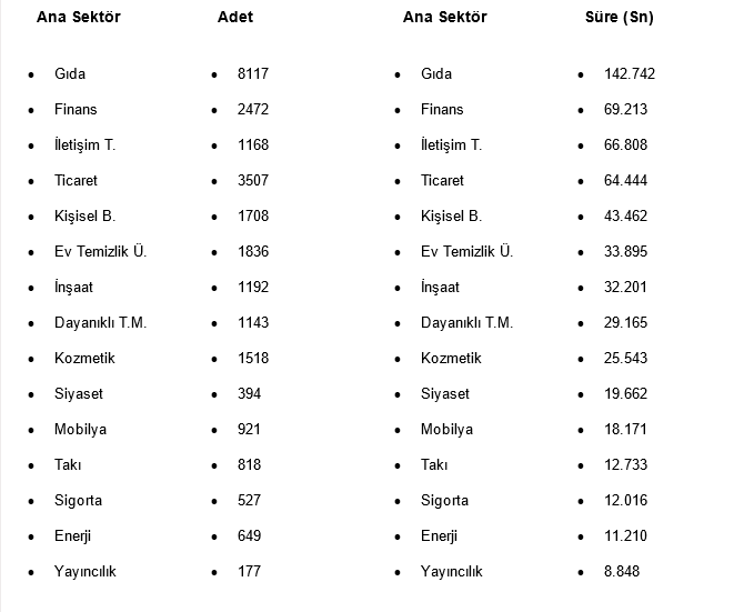 EN ÇOK REKLAM VEREN 15 SEKTÖR