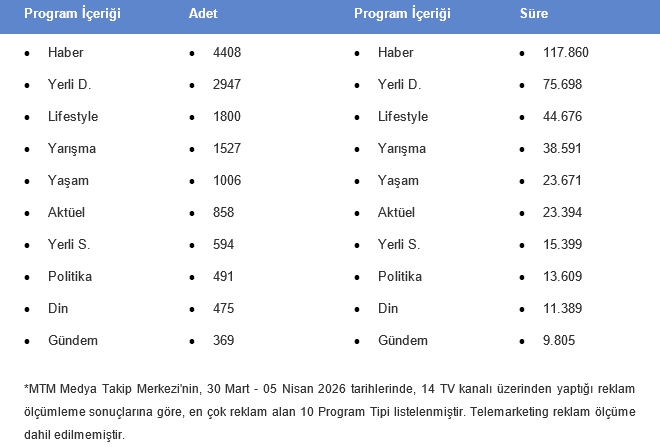 📺 EN ÇOK REKLAM ALAN 10 PROGRAM TİPİ