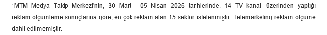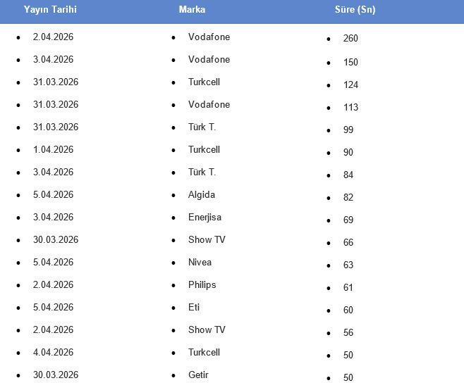 📅 30 MART - 05 NİSAN 2026 HAFTASINDA TV'DE YAYINLANAN YENİ REKLAMLAR