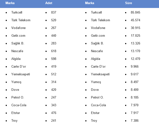 📊 EN ÇOK REKLAM VEREN 10 SEKTÖRÜN İLK 3 MARKASI