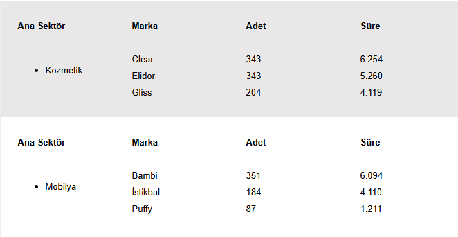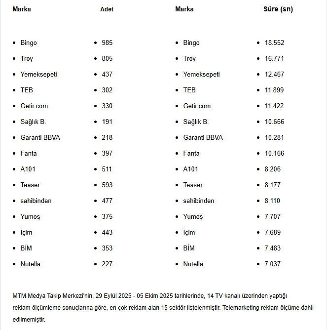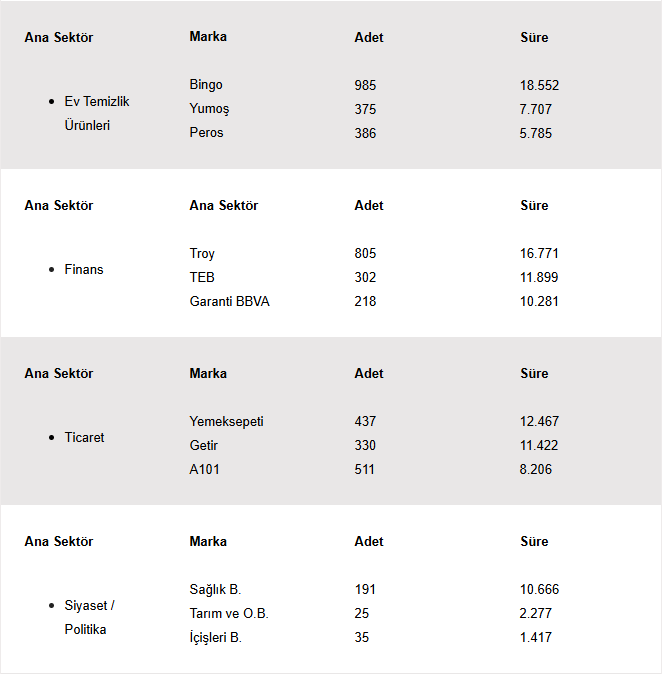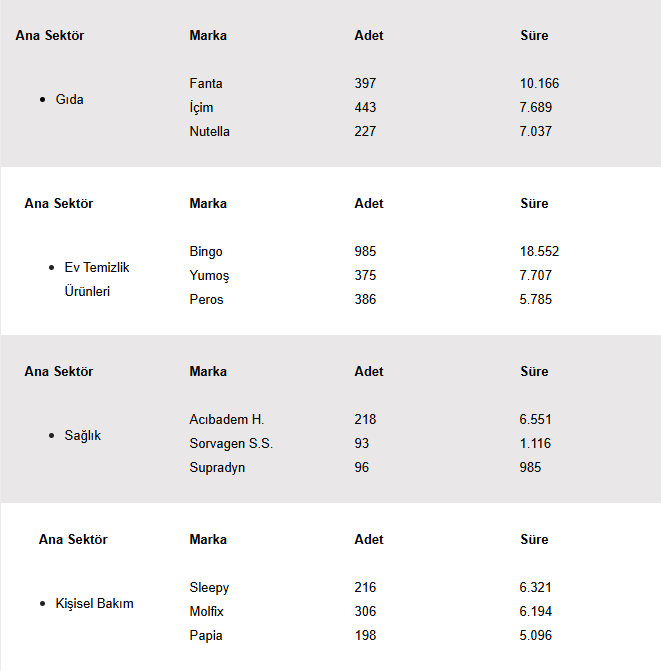 EN ÇOK REKLAM VEREN 10 SEKTÖRÜN İLK 3 MARKASI