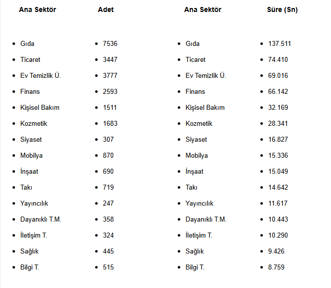 EN ÇOK REKLAM VEREN 15 SEKTÖR