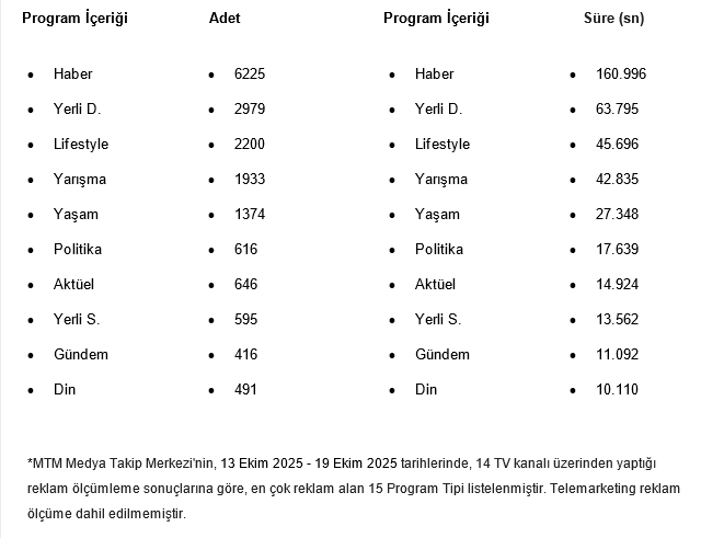 EN ÇOK REKLAM ALAN 10 PROGRAM TİPİ