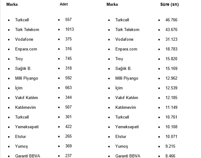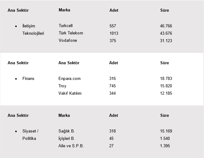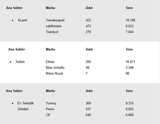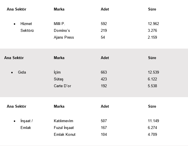 EN ÇOK REKLAM VEREN 10 SEKTÖRÜN İLK 3 MARKASI