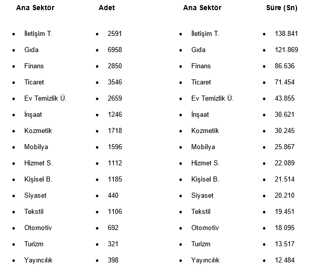EN ÇOK REKLAM VEREN 15 SEKTÖR