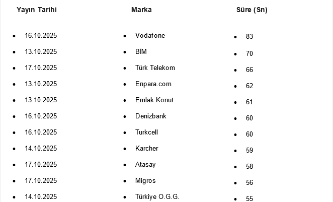 13 EKİM - 19 EKİM 2025 HAFTASINDA TV'DE YAYINLANAN YENİ REKLAMLAR