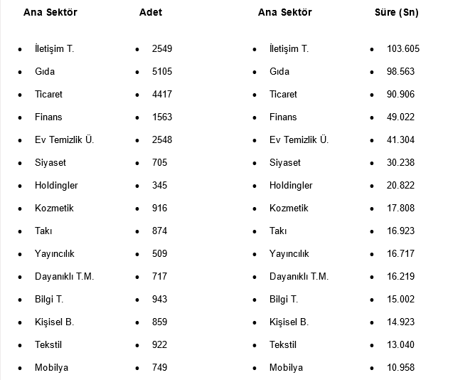 EN ÇOK REKLAM VEREN 15 SEKTÖR