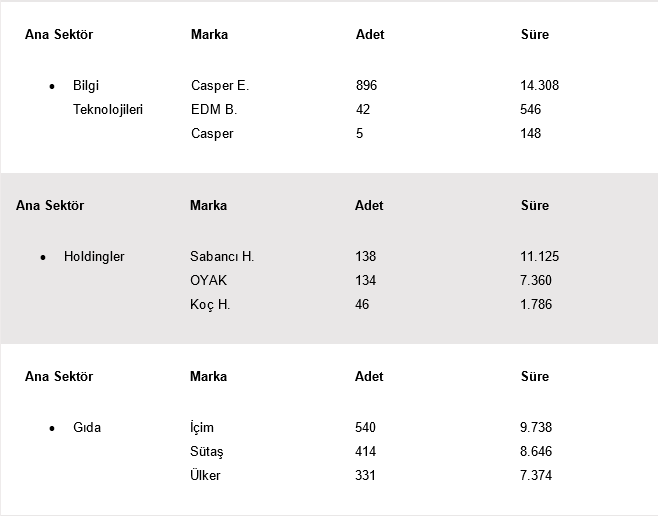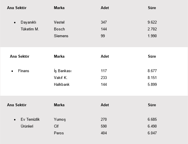 EN ÇOK REKLAM VEREN 10 SEKTÖRÜN İLK 3 MARKASI