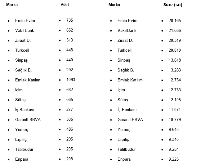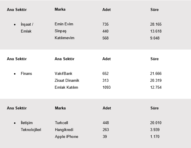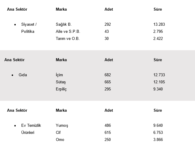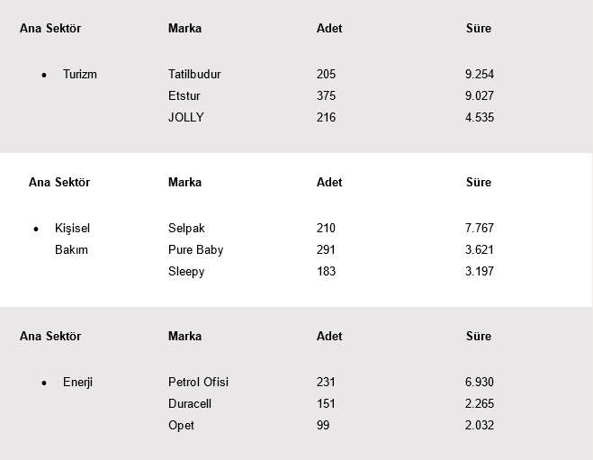 EN ÇOK REKLAM VEREN 10 SEKTÖRÜN İLK 3 MARKASI