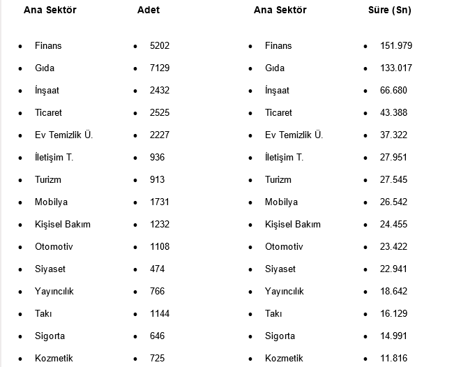 EN ÇOK REKLAM VEREN 15 SEKTÖR