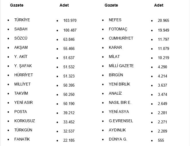 17 KASIM - 23 KASIM 2025 Gazetelerin Tirajları