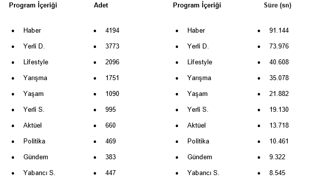 EN ÇOK REKLAM ALAN 10 PROGRAM TİPİ