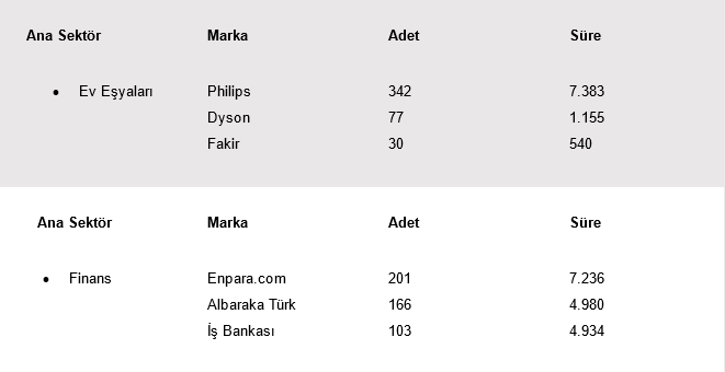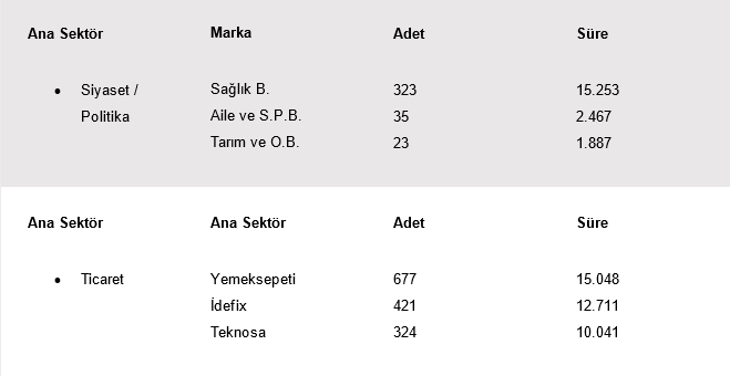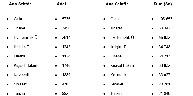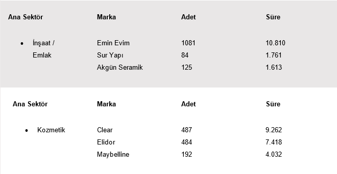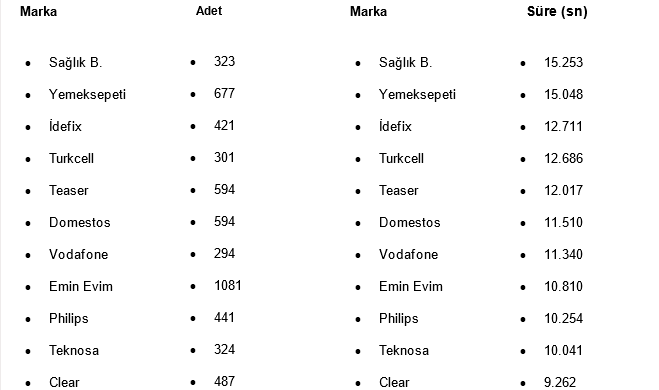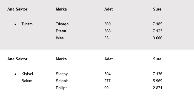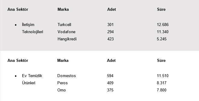 EN ÇOK REKLAM VEREN 10 SEKTÖRÜN İLK 3 MARKASI