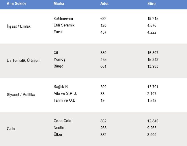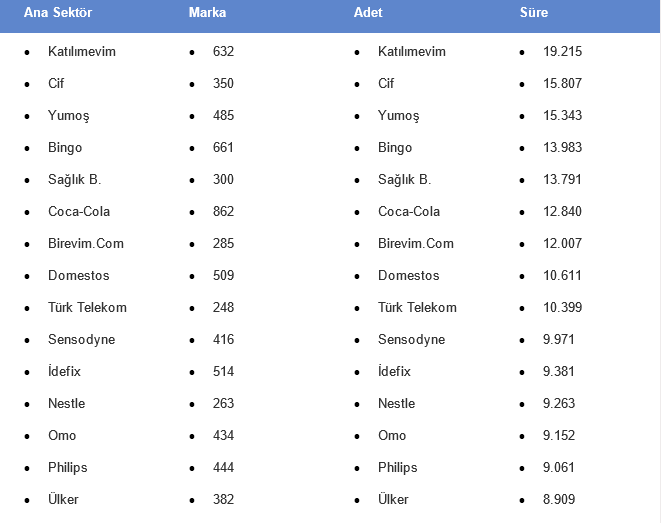📊 EN ÇOK REKLAM VEREN 10 SEKTÖRÜN İLK 3 MARKASI