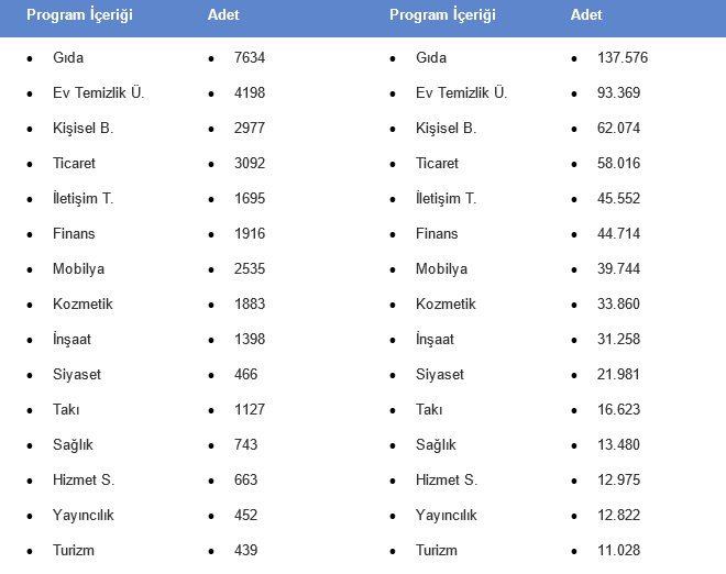 📺 EN ÇOK REKLAM ALAN 10 PROGRAM TİPİ
