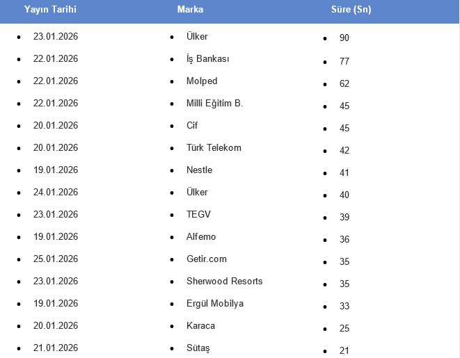 📅 19 OCAK - 25 OCAK 2026 HAFTASINDA TV'DE YAYINLANAN YENİ REKLAMLAR