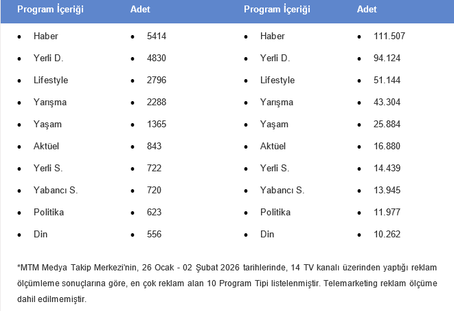 📺 EN ÇOK REKLAM ALAN 10 PROGRAM TİPİ