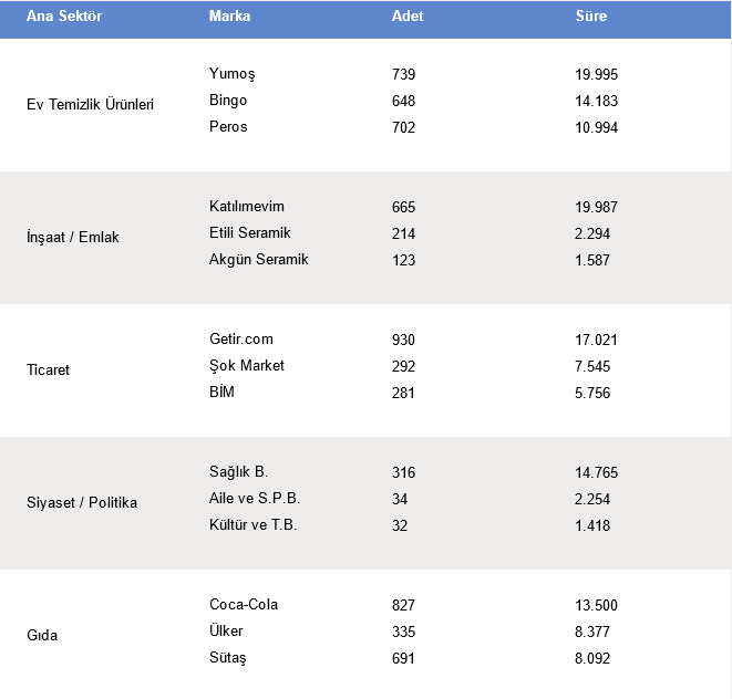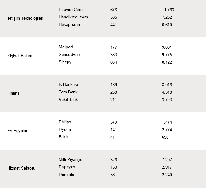 📊 EN ÇOK REKLAM VEREN 10 SEKTÖRÜN İLK 3 MARKASI