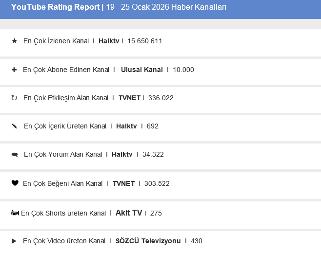 Aralık ayında en çok izlenen, en çok abone kazanan ve videoları en çok beğeni alan gazeteciler kimler oldu? Yanıtlar Marketing Türkiye YouTube Rating Report’ta!