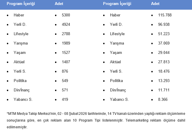 📺 EN ÇOK REKLAM ALAN 10 PROGRAM TİPİ