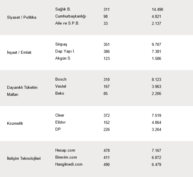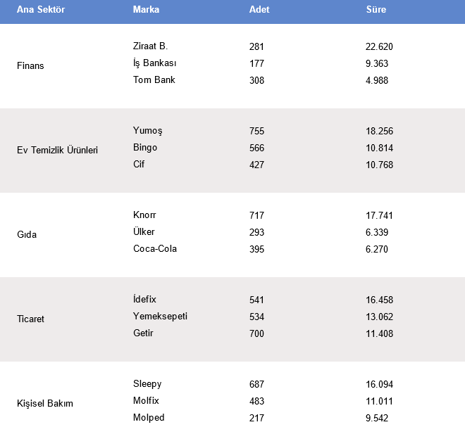 📊 EN ÇOK REKLAM VEREN 10 SEKTÖRÜN İLK 3 MARKASI