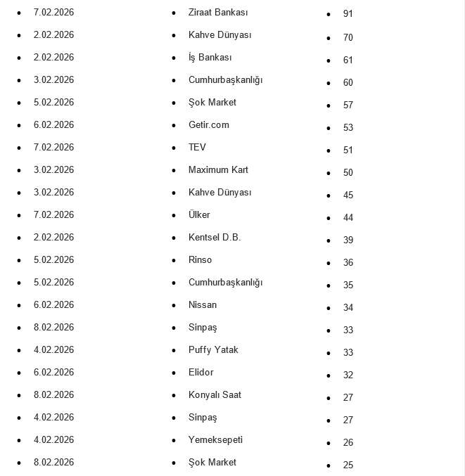 📅 02 - 08 ŞUBAT 2026 HAFTASINDA TV'DE YAYINLANAN YENİ REKLAMLAR