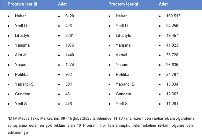 📺 EN ÇOK REKLAM ALAN 10 PROGRAM TİPİ