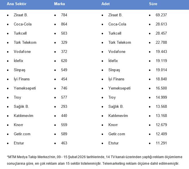 📅 09 - 15 ŞUBAT 2026 HAFTASINDA TV'DE YAYINLANAN YENİ REKLAMLAR