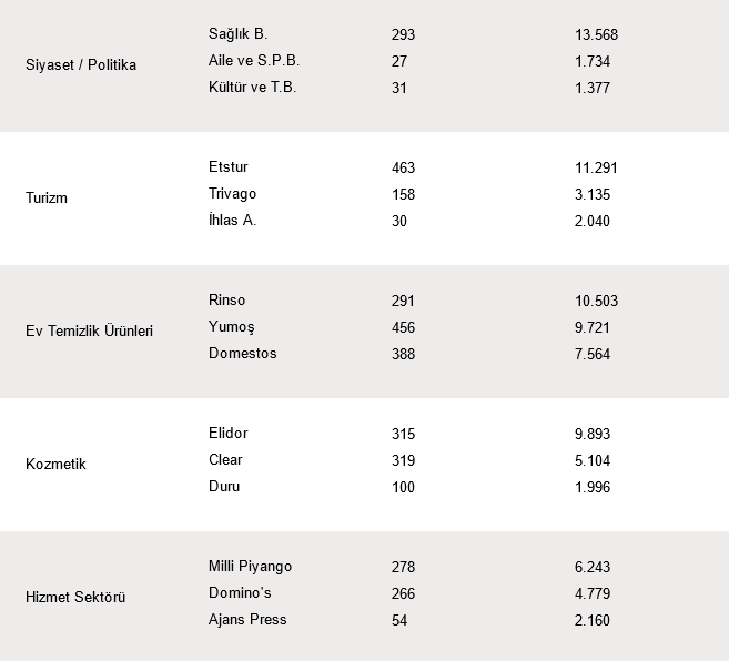 📊 EN ÇOK REKLAM VEREN 10 SEKTÖRÜN İLK 3 MARKASI