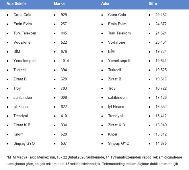 📅 16 - 22 ŞUBAT 2026 HAFTASINDA TV'DE YAYINLANAN YENİ REKLAMLAR