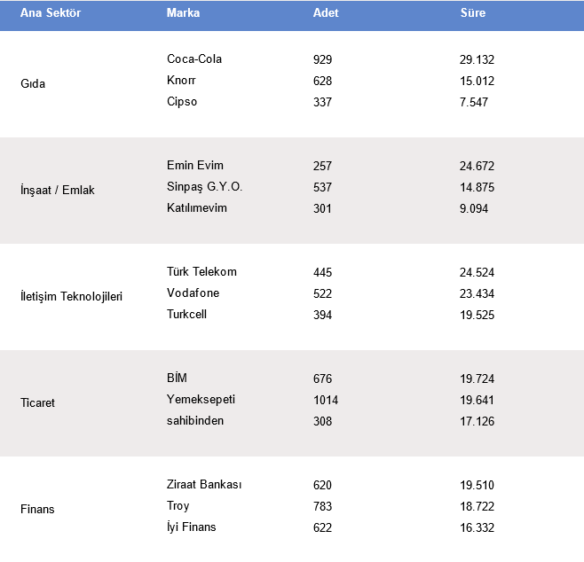 📊 EN ÇOK REKLAM VEREN 10 SEKTÖRÜN İLK 3 MARKASI