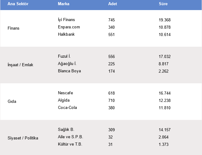 📊 EN ÇOK REKLAM VEREN 10 SEKTÖRÜN İLK 3 MARKASI
