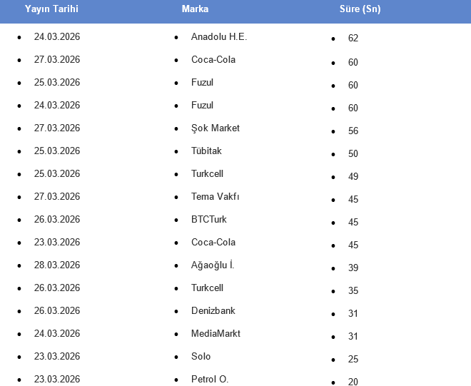 📅 23 MART - 29 MART 2026 HAFTASINDA TV'DE YAYINLANAN YENİ REKLAMLAR
